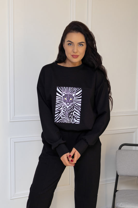 “Leopard juodas laisvalaikio kostiumas"