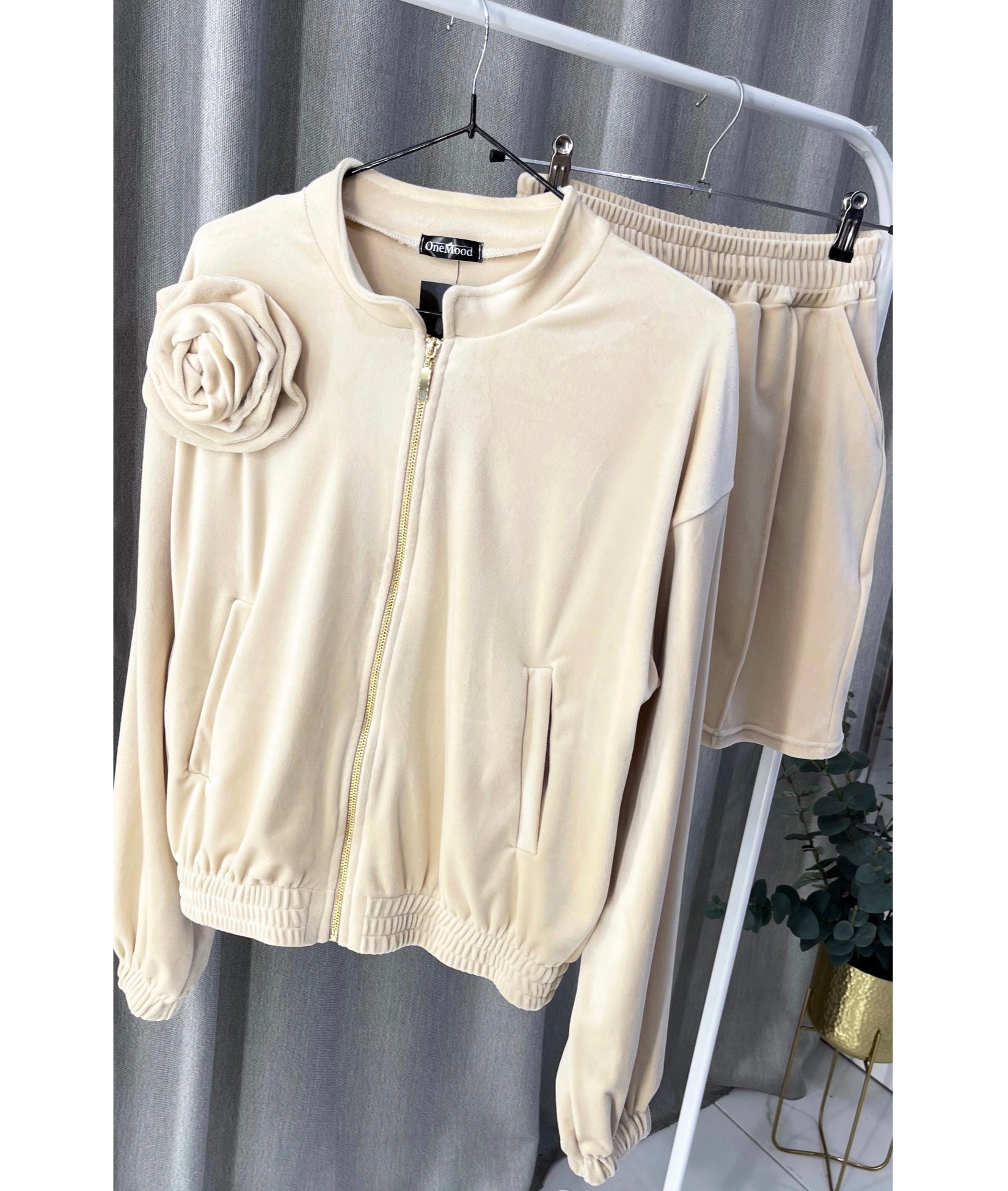The wide cut of the trousers and the practical jacket with pockets give a sense of freedom, perfect for both home and active leisure.