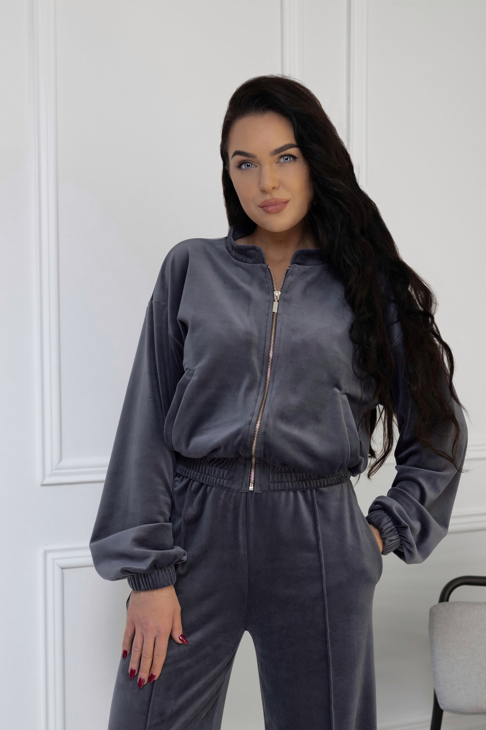 Stylish and elegant high-quality soft velour leisure suit. The soft fabric provides a feeling of softness and comfort, does not restrict movement, and is comfortable to wear. The set includes a sweater and trousers.