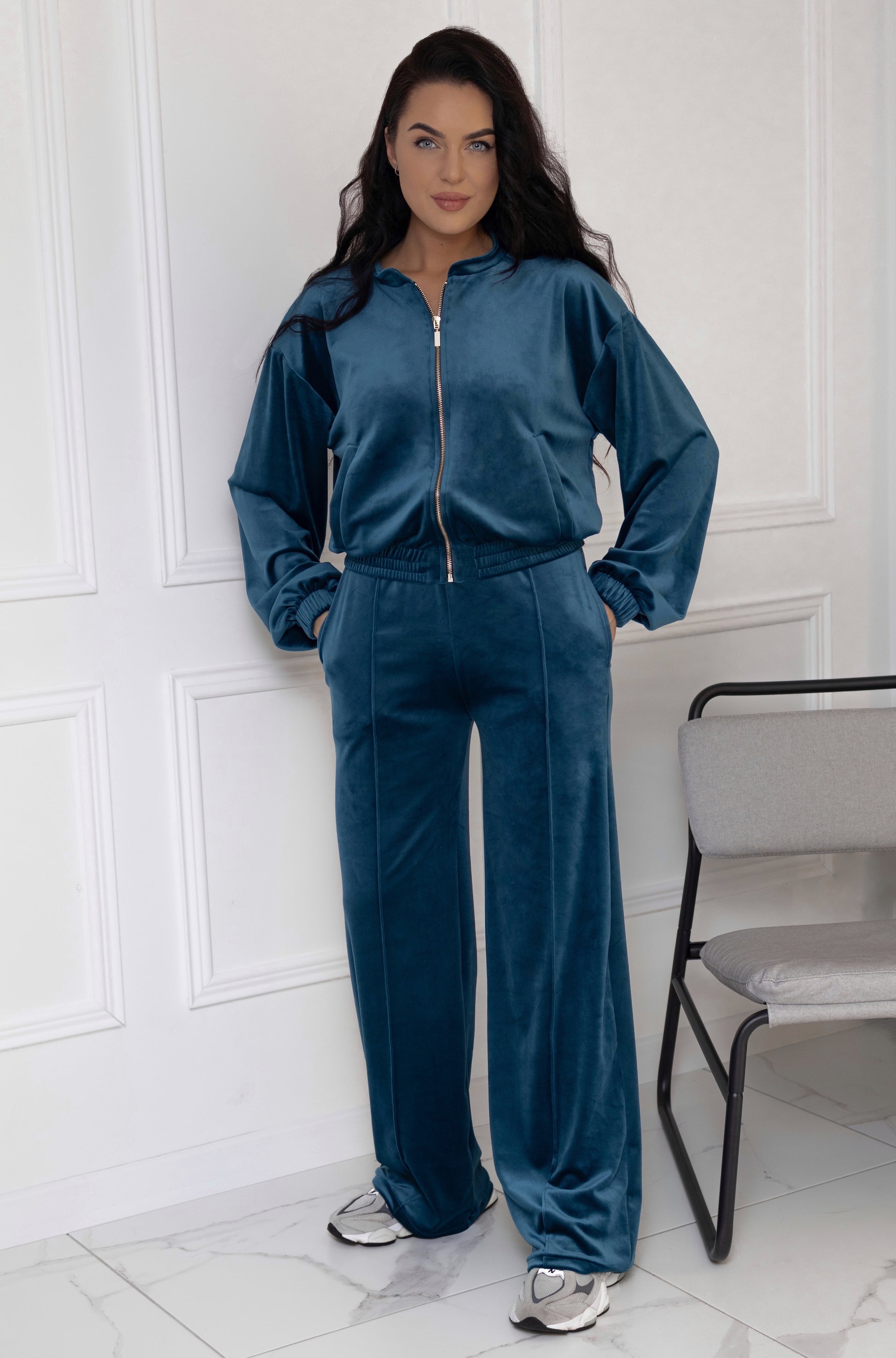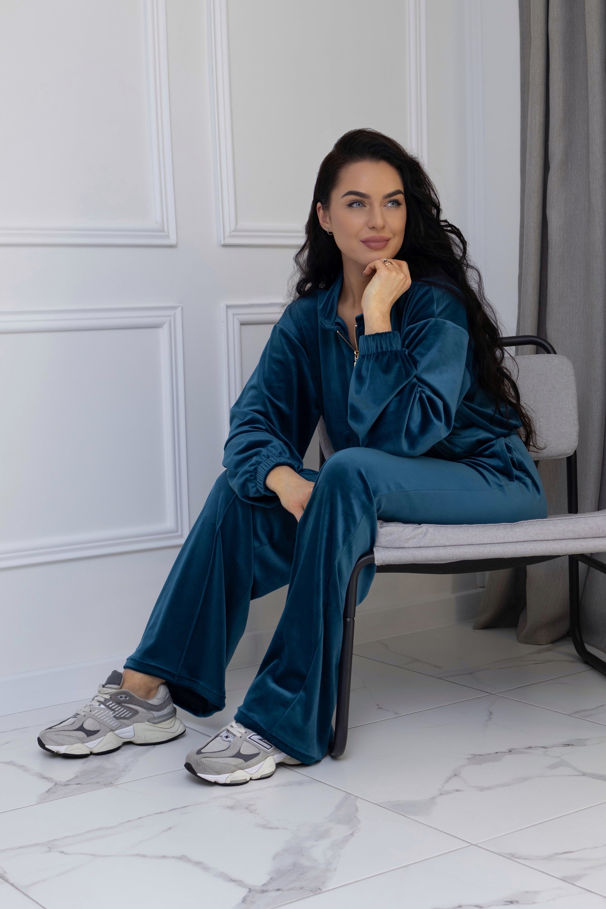 Stylish and elegant high-quality soft velour leisure suit. The soft fabric provides a feeling of softness and comfort, does not restrict movement, and is comfortable to wear. The set includes a sweater and trousers.