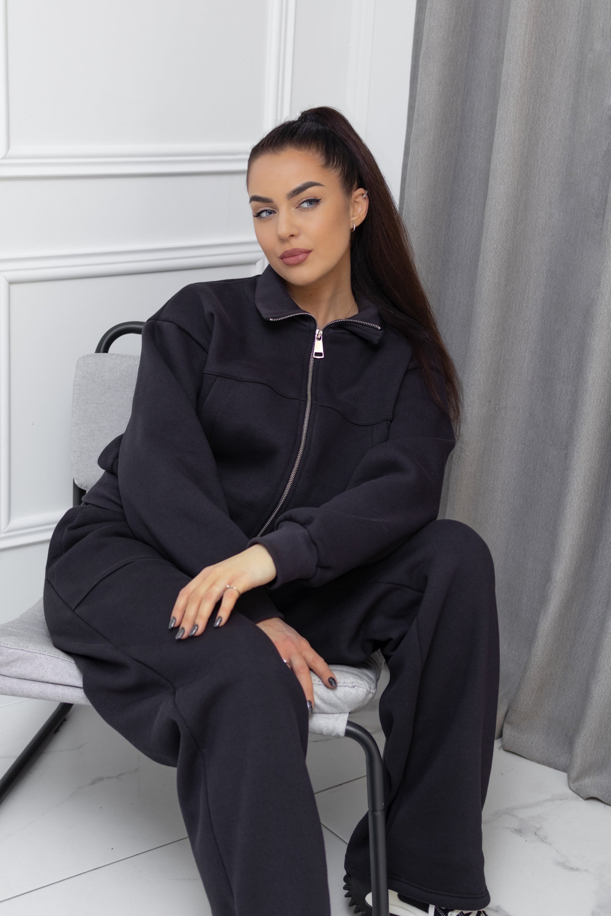 Women's cotton leisure suit with fluff. Jacket with pockets, wide trousers. An ideal choice for a comfortable and stylish everyday look. The suit is made of soft cotton jersey with fluff, which provides a high level of comfort and adapts perfectly to the body shape.