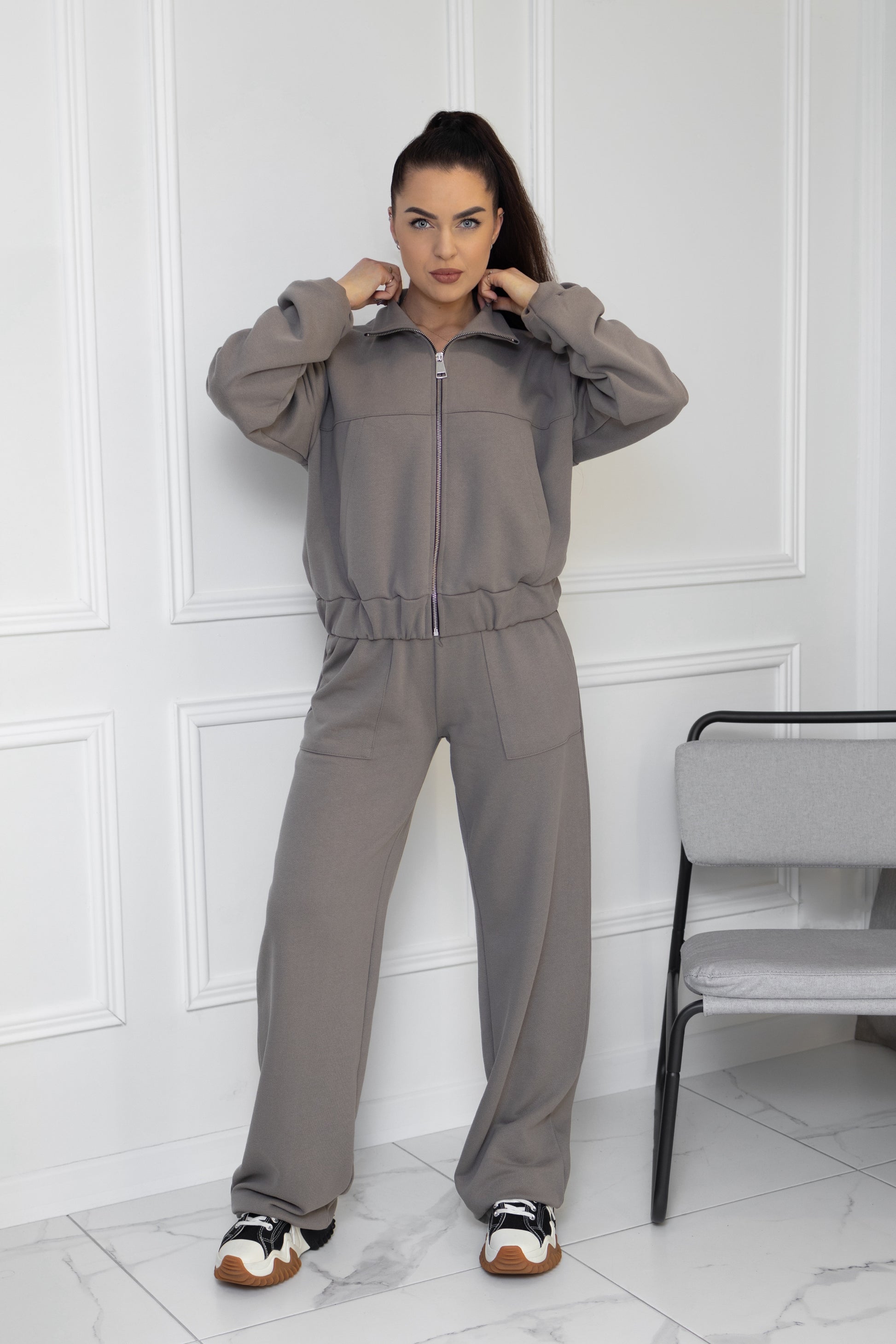 Women's three-ply terry knit leisure suit. Jacket with pockets, wide trousers. An ideal choice for a comfortable and stylish everyday look. The suit is made of soft three-ply terry knit, which provides a high level of comfort, is breathable and adapts perfectly to the body shape.